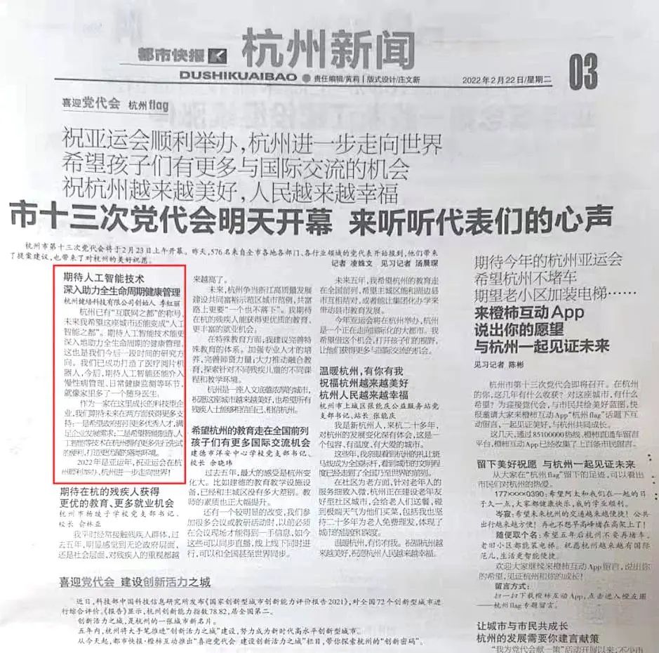 杭州已有“互聯(lián)網(wǎng)之都”的稱號(hào),未來(lái)我希望這座城市還能變成“人工智能之都”。期待人工智能技術(shù)能更深入地助力全生命周期的健康管理,這也是我們今后一段時(shí)間的研究方向。我們已成功打造了醫(yī)療閱片機(jī)器人,今后,期待人工智能還能介入慢性病管理、日常健康監(jiān)測(cè)等環(huán)節(jié),就像家里多了一個(gè)隨身醫(yī)生。