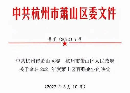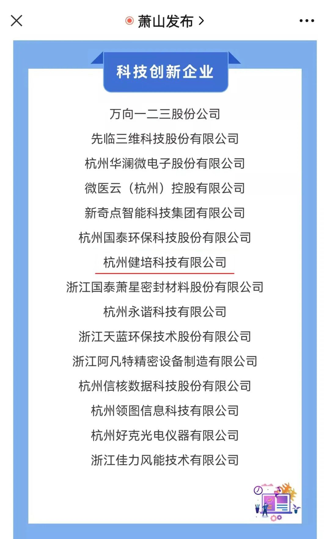 喜訊:健培科技成功入圍“蕭山區(qū)百強(qiáng)企業(yè)”