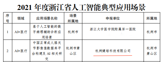 喜訊:健培科技成功入選2021浙江省人工智能典型應(yīng)用場(chǎng)景名單