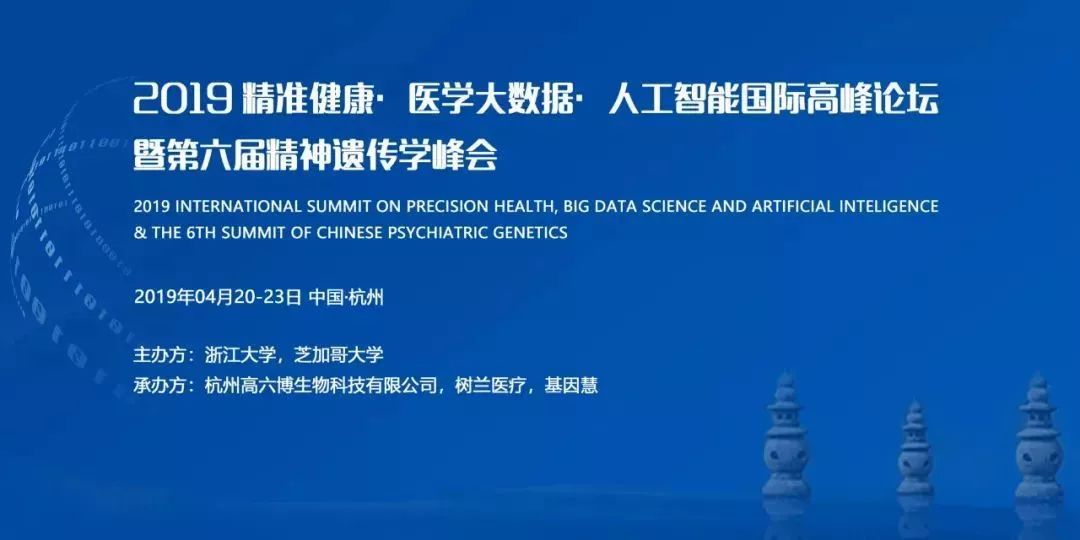 2019年4月20-23日,由美國(guó)芝加哥大學(xué)(University of Chicago)和浙江大學(xué)聯(lián)合主辦的“2019精準(zhǔn)健康?醫(yī)學(xué)大數(shù)據(jù)?人工智能國(guó)際高峰論壇暨第六屆中國(guó)遺傳學(xué)峰會(huì)(2019 International Summit on Precision Health, Big Data Science and Artificial Intelligence & The 6th Summit of Chinese Psychiatric Genetics)"在杭州國(guó)際博覽中心盛大召開。