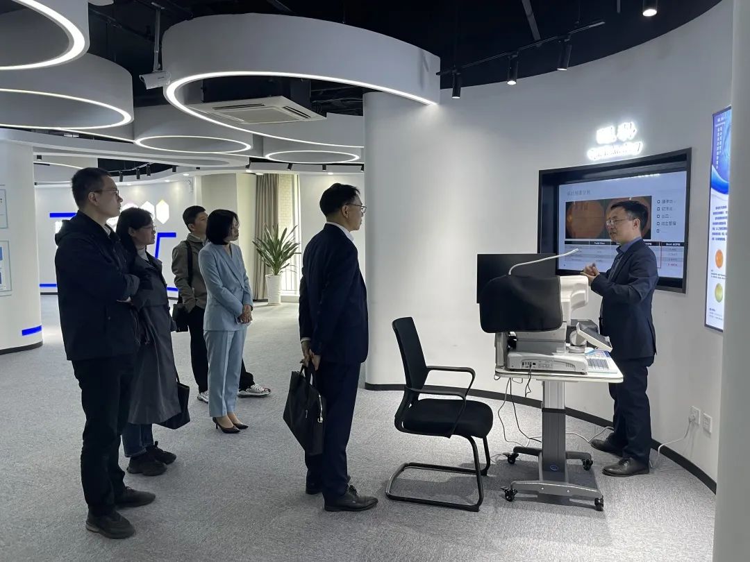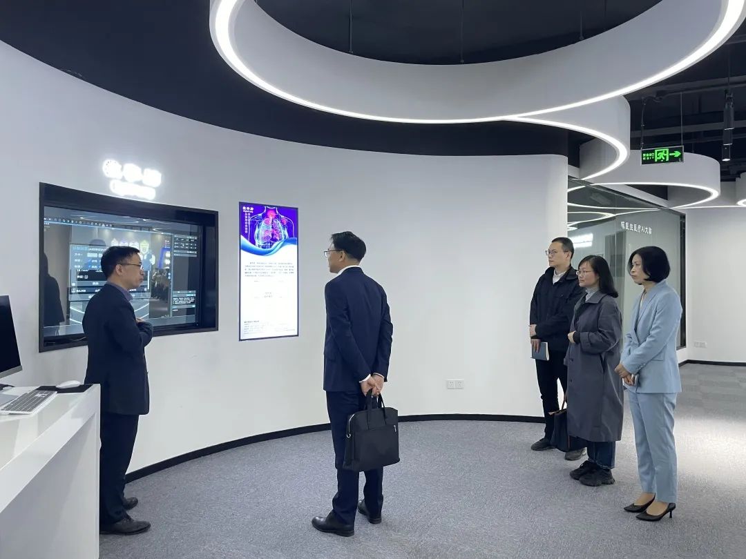 4月12日,農工黨浙江省委會專職副主委兼秘書長、省政協(xié)副秘書長吳道濤,農工黨省委會調研部部長王穎,農工黨省委會調研部二級主任科員俞銳一行蒞臨健培科技參觀考察。調研醫(yī)療健康產業(yè)與人工智能融合發(fā)展情況。浙江醫(yī)學會放射分會主委、浙江省中醫(yī)院放射科主任許茂盛,浙江省衛(wèi)生信息中心副主任郭一,蕭山區(qū)中醫(yī)院骨傷科主任曾林如等專家共同參加研討會。