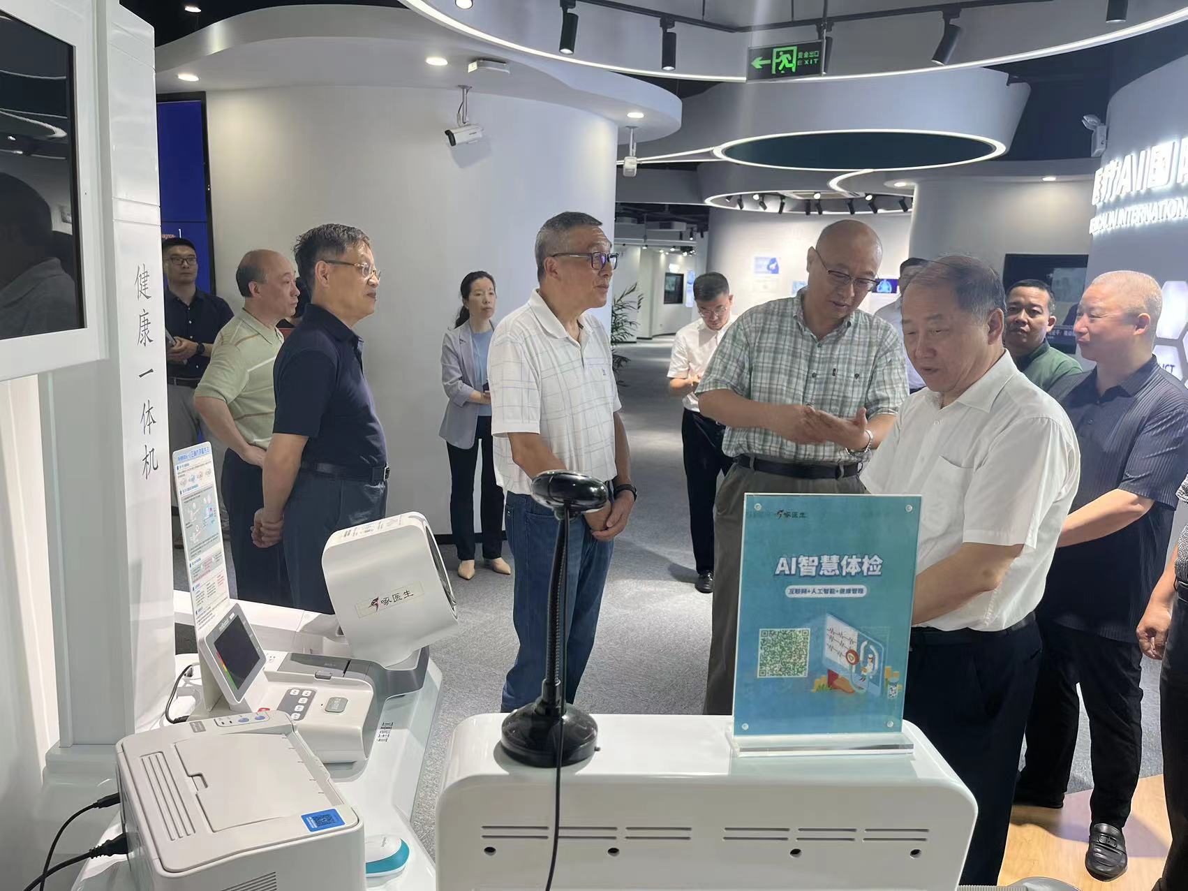 健培科技副總裁徐招海匯報了公司發(fā)展歷程、以及近年來利用新興的ChatGPT等AI技術(shù),在醫(yī)療公共衛(wèi)生領(lǐng)域方面的相關(guān)探索和成績。并重點介紹了在未來社區(qū)、未來鄉(xiāng)村建設(shè)環(huán)境下基于“智能診室”的未來健康場景。領(lǐng)導(dǎo)們在參觀過程中交流了兩地科技創(chuàng)新的經(jīng)驗和做法,對健培在醫(yī)療健康事業(yè)發(fā)展中作出的努力以及科技轉(zhuǎn)化的成績表示贊賞,并表示基層公共衛(wèi)生服務(wù)是守護群眾健康的第一道防線,要充分發(fā)揮社會力量作用,同時希望企業(yè)再接再厲,更上一層樓,為數(shù)字化高質(zhì)量發(fā)展貢獻力量。