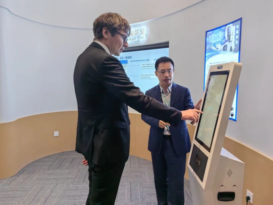 國際電信聯(lián)盟副秘書長托馬斯?蘭曼瑙斯卡斯對“烏鎮(zhèn)智能醫(yī)院”國內(nèi)首個全流程采用人工智能服務(wù)的醫(yī)康養(yǎng)一體化的社區(qū)醫(yī)院高度贊揚(yáng),并饒有興趣的親身體驗(yàn)其中一些場景。特別是對智能問診、慢病管理、穿戴設(shè)備進(jìn)行了深入了解,對AI看病的一些政策進(jìn)行了了解。通過本次參觀考察,不僅為中外學(xué)術(shù)交流建立了優(yōu)質(zhì)的溝通渠道,同時也為將來更多更深層次的國際合作奠定了堅(jiān)實(shí)的基礎(chǔ)。