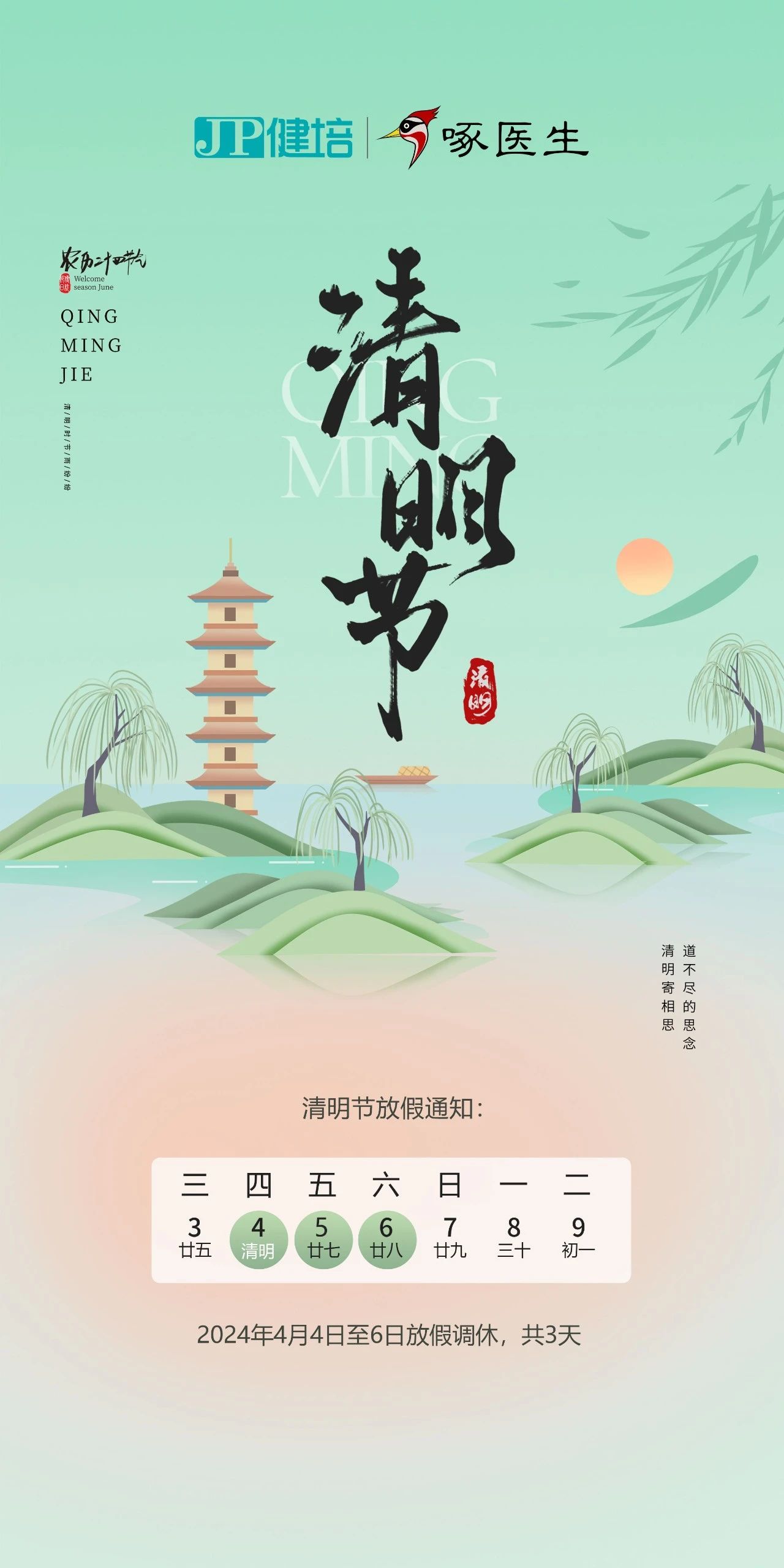 4月4日(星期四)至6日放假調(diào)休,共3天,4月7日(星期日)上班。
