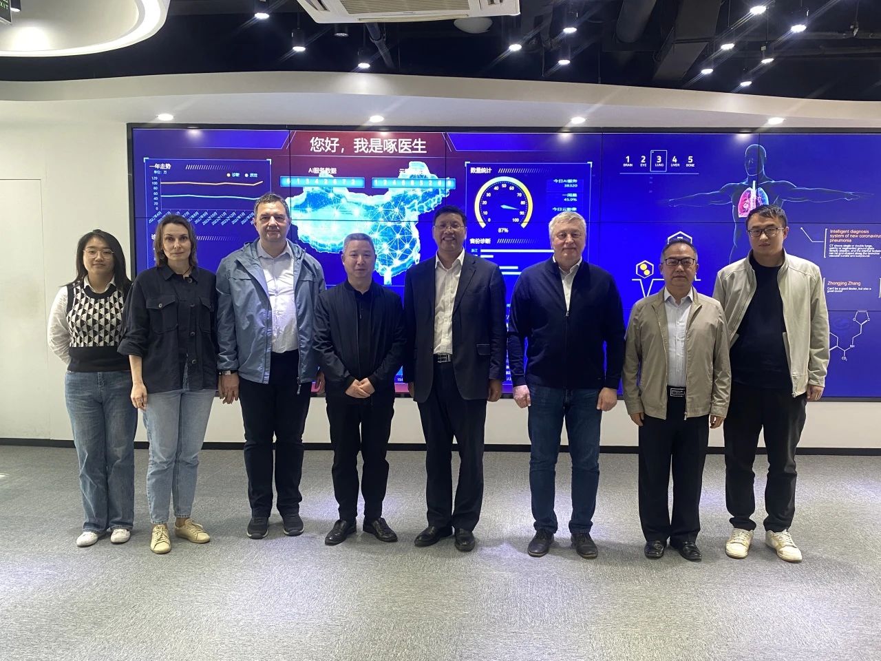 4月10日下午, 白俄羅斯科學(xué)院通訊院士、白俄羅斯科學(xué)院信息問題聯(lián)合研究所原所長(zhǎng)Alexander Tuzikov,白俄羅斯國(guó)立大學(xué)計(jì)算機(jī)系原主任、教授Alexander Nedzved,白俄羅斯國(guó)立大學(xué)生物系副教授Volha Nedzvedz,浙江樹人大學(xué)副校長(zhǎng)葉時(shí)平,浙江樹人大學(xué)信息科技學(xué)院副院長(zhǎng)張登輝,浙江樹人學(xué)院信息科技學(xué)院博士孫慶榮、李思瑩等領(lǐng)導(dǎo)一行蒞臨健培科技參觀交流并開展座談。深入了解醫(yī)療行業(yè)前沿技術(shù)的發(fā)展情況,以及人工智能在數(shù)字醫(yī)療領(lǐng)域的場(chǎng)景應(yīng)用和產(chǎn)業(yè)化前景。