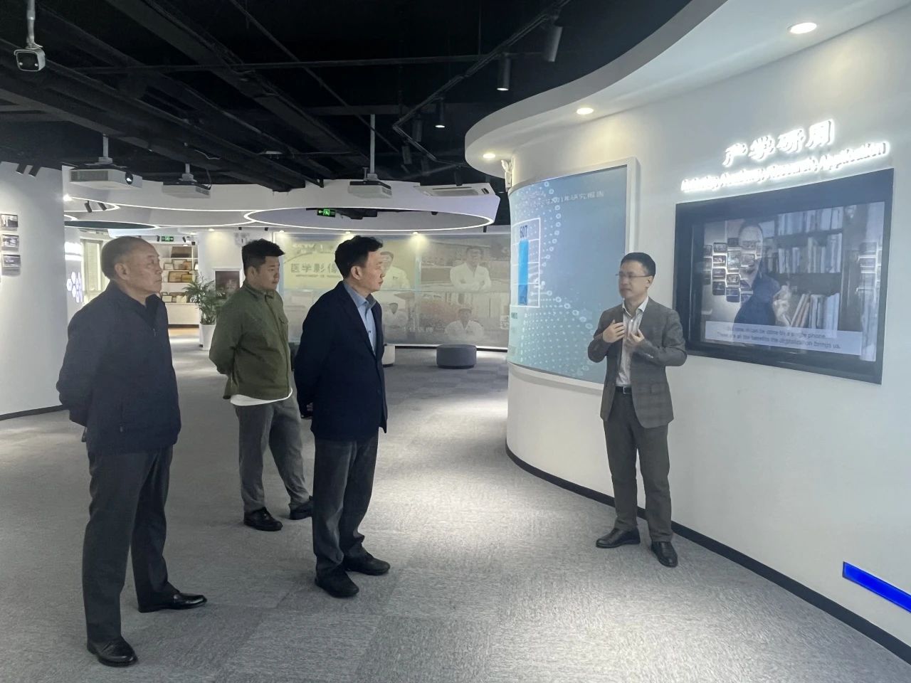 參觀交流中,程國(guó)華董事長(zhǎng)特別介紹了我司自主研發(fā)的“智能全科啄醫(yī)生”等醫(yī)療人工智能系列產(chǎn)品的研發(fā)進(jìn)展,以及創(chuàng)辦的全國(guó)首家人工智能醫(yī)院---“烏鎮(zhèn)智能醫(yī)院”的運(yùn)行情況。史會(huì)長(zhǎng)對(duì)公司近年來取得的成績(jī)表示肯定,對(duì)AI賦能醫(yī)療產(chǎn)業(yè)升級(jí)、促進(jìn)健康服務(wù)提升的理念表示贊賞。同時(shí)也期待在健康中國(guó)行動(dòng)中、以及在應(yīng)對(duì)老齡化社會(huì)中,企業(yè)能充分發(fā)揮醫(yī)療科技的行業(yè)賦能作用,在行動(dòng)推進(jìn)過程中涌現(xiàn)出更多、更好、可復(fù)制、可推廣的經(jīng)驗(yàn),為“健康中國(guó)”建設(shè)目標(biāo)貢獻(xiàn)企業(yè)力量。?