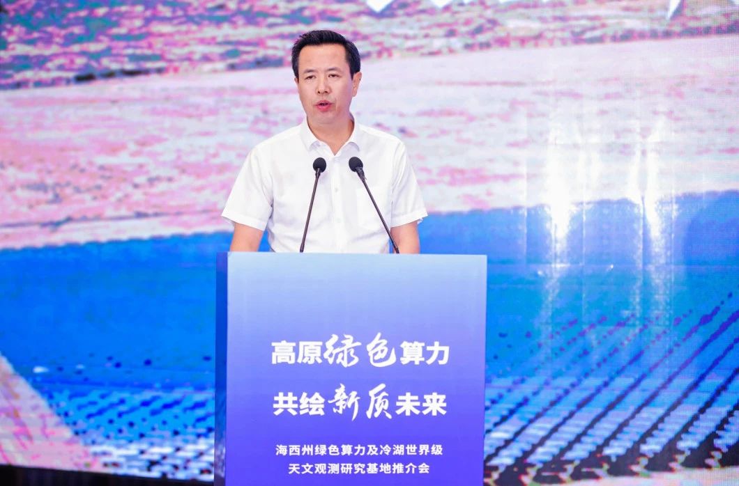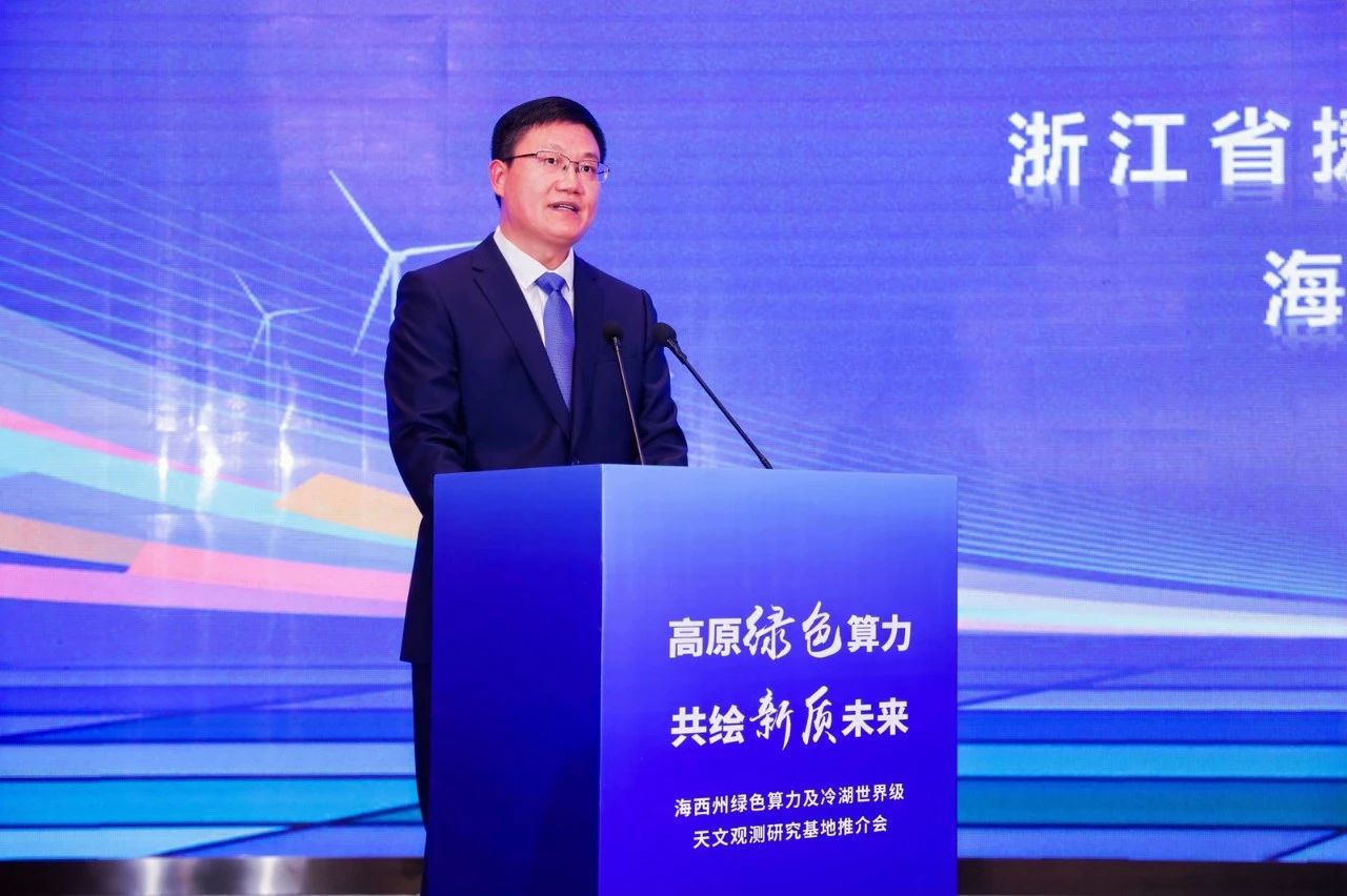 海西州委副書記、州長喬亞群,浙江省發(fā)展改革委黨組成員、副主任駱方豪,青海省數(shù)據(jù)局副局長陳衛(wèi)軍分別致辭。海西州委副書記、副州長、浙江援青指揮部黨委書記、指揮長詹茂偉主持推介會。海西州政府副州長李天林做海西州綠色算力及冷湖世界級天文觀測研究基地推介。