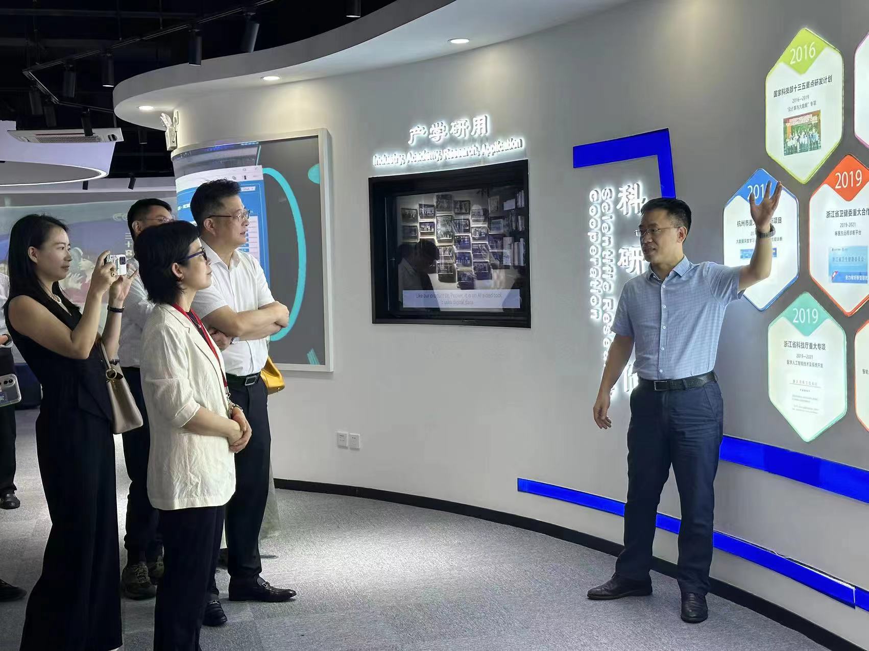 區(qū)僑聯(lián)常委、區(qū)政協(xié)委員、健培科技董事長程國華,全國三八紅旗手、浙江省政協(xié)委員季紅麗等公司領(lǐng)導(dǎo)熱情接待。程總介紹了公司歸國留學(xué)生創(chuàng)始人團(tuán)隊(duì)創(chuàng)業(yè)創(chuàng)新的發(fā)展歷程、國內(nèi)外產(chǎn)學(xué)研用的合作情況、以及基于“啄醫(yī)生”的未來全球布局等有關(guān)情況。程總表示,早在12年前,借助僑聯(lián)的橋梁作用與資源優(yōu)勢,精準(zhǔn)選擇了“醫(yī)療+人工智能”賽道,成為第一批在醫(yī)療人工智能領(lǐng)域創(chuàng)業(yè)的歸僑。同時(shí),借鑒海外科技趨勢與多學(xué)科融合經(jīng)驗(yàn),讓健培能夠率先在國內(nèi)落地一系列醫(yī)療人工智能產(chǎn)品與服務(wù),助力行業(yè)高質(zhì)量發(fā)展。