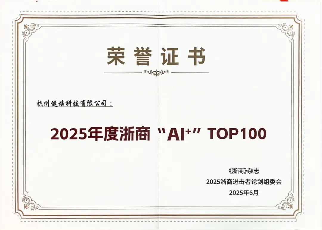 喜訊:健培科技榮登“2025 年度浙商‘AI+’TOP100”榜單