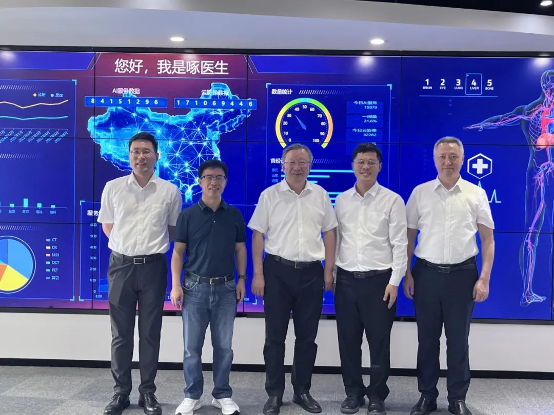 7月8日上午,全國(guó)政協(xié)常委、浙江省政協(xié)副主席、民進(jìn)中央常委、民進(jìn)浙江省委會(huì)主委、浙江大學(xué)醫(yī)學(xué)院附屬邵逸夫醫(yī)院院長(zhǎng)蔡秀軍;院黨委書記徐國(guó)斌;幾位副院長(zhǎng):丁國(guó)慶、虞洪、莊一渝、宋章法等領(lǐng)導(dǎo)一行蒞臨健培科技考察調(diào)研。調(diào)研新一代信息技術(shù)的發(fā)展趨勢(shì)和應(yīng)用前景,并重點(diǎn)關(guān)注人工智能技術(shù)在醫(yī)療領(lǐng)域的創(chuàng)新和應(yīng)用。蕭山經(jīng)濟(jì)技術(shù)開發(fā)區(qū)黨工委委員、管委會(huì)副主任傅克,區(qū)衛(wèi)健局、區(qū)數(shù)據(jù)資源管理局、開發(fā)區(qū)黨群工作部、信息港管理局相關(guān)負(fù)責(zé)人陪同調(diào)研。