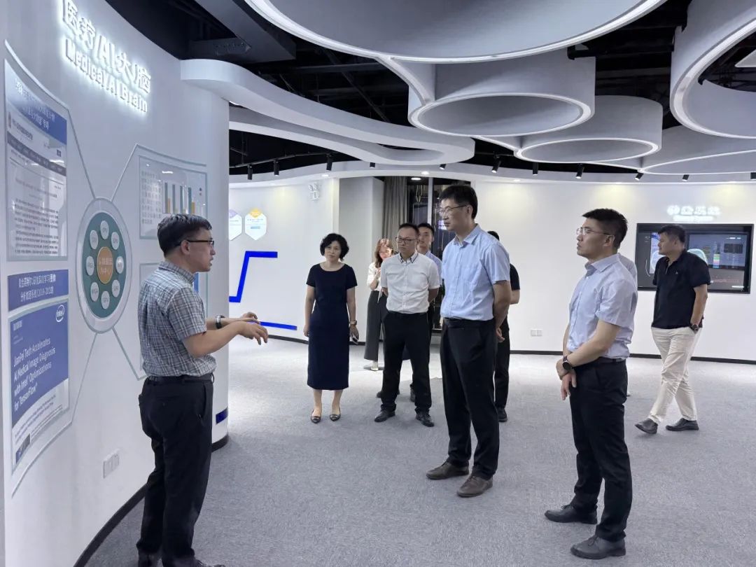 7月15日,上海楊浦區(qū)人民政府副區(qū)長(zhǎng)劉晉元、上海市科委前沿交叉處處長(zhǎng)陳明、上海楊浦區(qū)科經(jīng)委副主任葉桂芳、信通院上海工創(chuàng)中心副總經(jīng)理方金武、信通院上海工創(chuàng)中心高級(jí)咨詢顧問王梅卿、上海楊浦科創(chuàng)集團(tuán)副書記朱鴿飛、上海楊浦區(qū)科經(jīng)委副科長(zhǎng)吳強(qiáng)、上海楊浦科技投資發(fā)展有限公司總經(jīng)理施展等領(lǐng)導(dǎo)一行蒞臨健培科技考察指導(dǎo)工作。調(diào)研AI+醫(yī)療健康科技融合應(yīng)用情況,并深入了解數(shù)字醫(yī)療科技賦能基層醫(yī)療機(jī)構(gòu)以及公共衛(wèi)生事業(yè)情況。