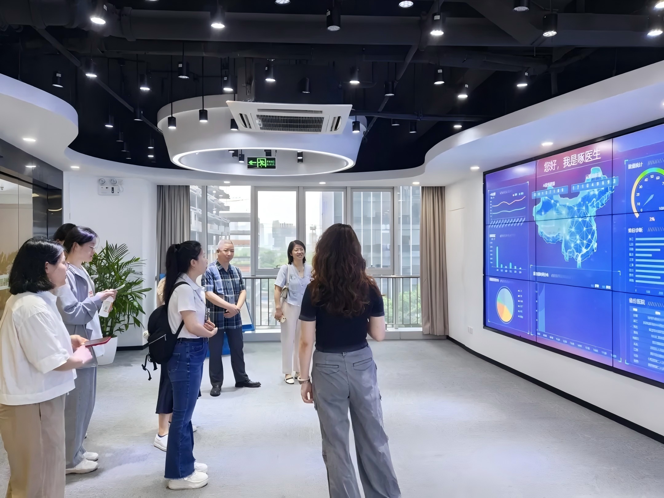 健培科技副總裁徐招海、黨支部書記謝金波等領導熱情接待。在參觀過程中,徐總介紹了公司在醫(yī)療AI領域多年的探索與取得的成績,歷年承擔的科研攻關項目與重大課題,啄醫(yī)生醫(yī)療大模型的研究成果與創(chuàng)新的醫(yī)療健康服務模式,以及健培與多所高校合作醫(yī)療人工智能項目、人才共建等情況。此次調研交流為雙方之間的技術協(xié)同合作搭建了橋梁。雙方將不斷探索產學研融合創(chuàng)新的合作,通過資源共享和優(yōu)勢互補,共同致力于技術創(chuàng)新和促進產業(yè)升級,為醫(yī)療健康數字化、智能化發(fā)展貢獻力量。