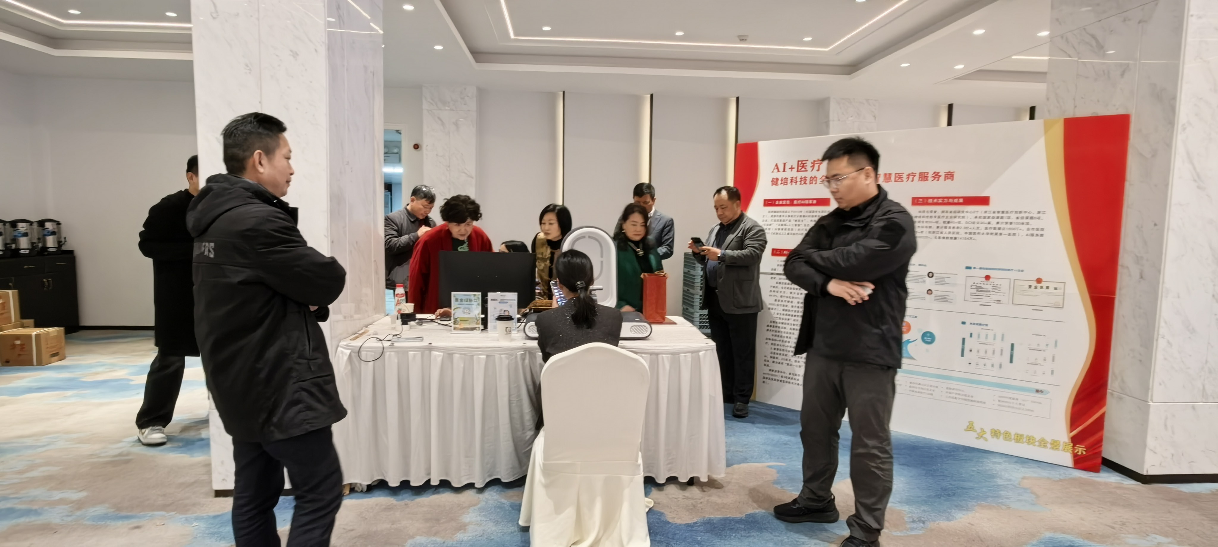 在醫(yī)療+AI展位上,啄醫(yī)生APP+穿戴設(shè)備軟硬一體化,線上線下一體化的創(chuàng)新方式吸引了很多人前來圍觀和體驗,對中西結(jié)合的產(chǎn)品贊不絕口。希望通過本次大會為契機,與各界朋友攜手并肩,讓AI賦能健康行業(yè)新質(zhì)生產(chǎn)力發(fā)展,共創(chuàng)更加輝煌的明天!
