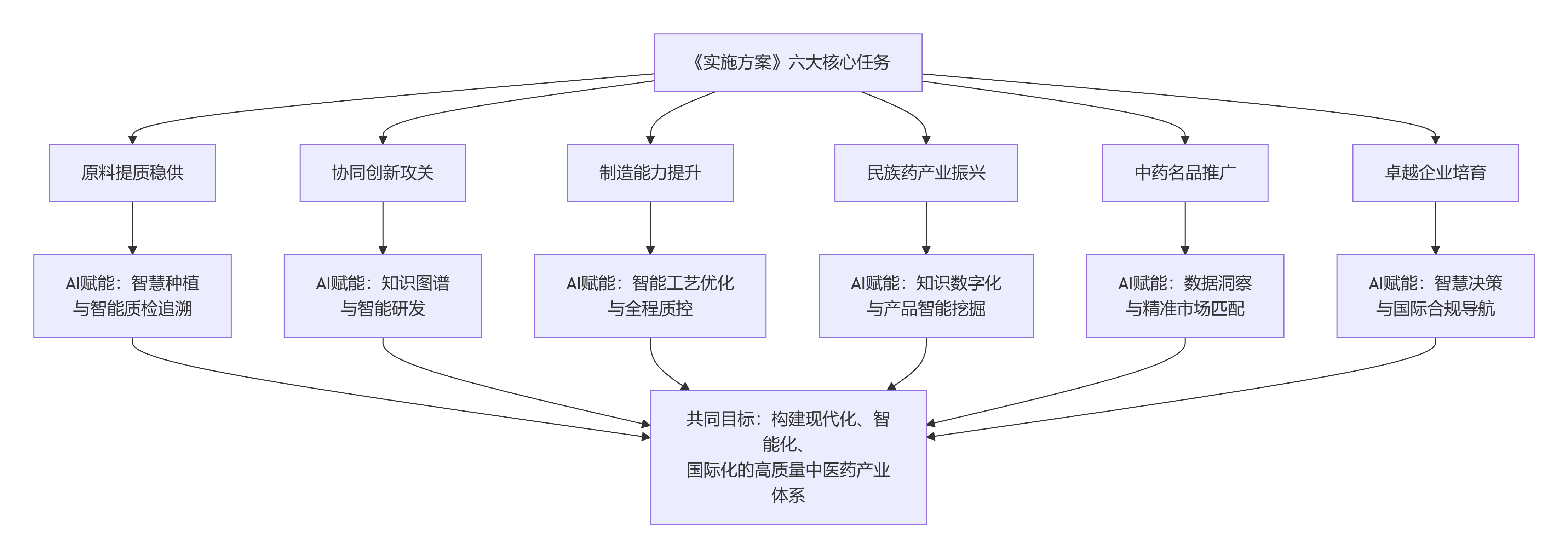 《實(shí)施方案》的發(fā)布,意味著中藥產(chǎn)業(yè)在政策驅(qū)動(dòng)下,正步入一個(gè)技術(shù)與傳統(tǒng)深度融合的新階段。 AI賦能中藥產(chǎn)業(yè),其本質(zhì)是以數(shù)據(jù)和智能為核心,重塑中藥全產(chǎn)業(yè)鏈的研發(fā)范式、生產(chǎn)模式與價(jià)值生態(tài),推動(dòng)產(chǎn)業(yè)完成現(xiàn)代化與高質(zhì)量發(fā)展的關(guān)鍵一躍。