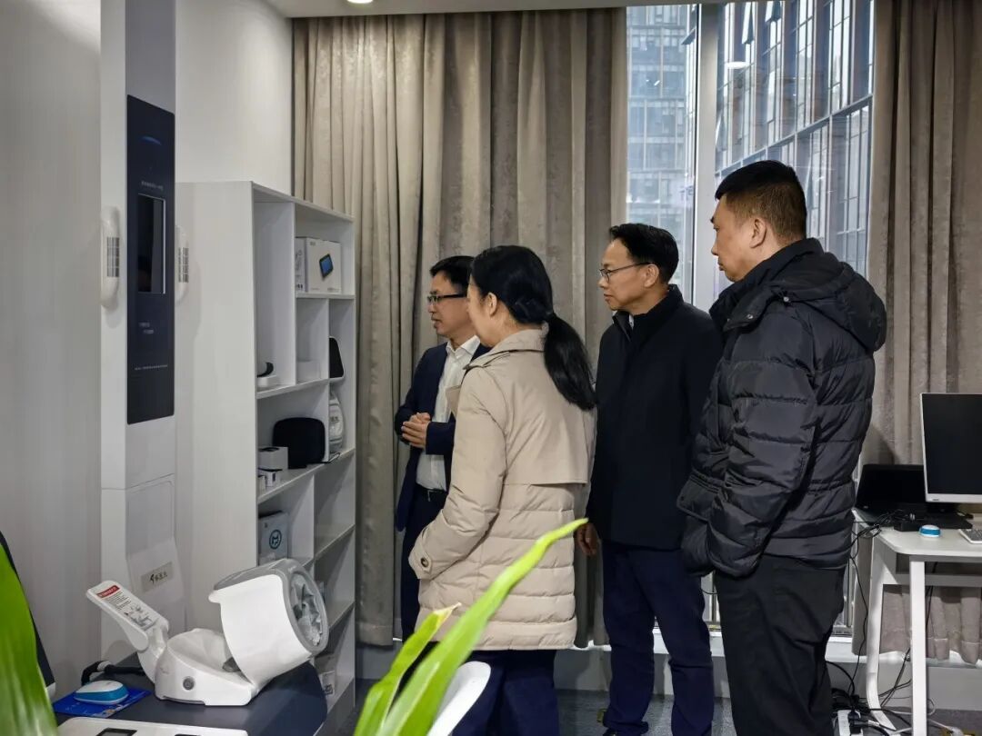 2月26日下午,農(nóng)工黨浙江省委會專職副主委兼秘書長、省政協(xié)副秘書長吳道濤,農(nóng)工黨省委會組織部部長米靜,組織部副部長王瑞?等一行蒞臨健培科技參觀考察。走訪黨員企業(yè)并調(diào)研醫(yī)療健康產(chǎn)業(yè)與人工智能融合發(fā)展情況。農(nóng)工黨中央經(jīng)濟委委員、農(nóng)工黨浙江省委會教科文工作委員會委員、健培科技董事長程國華,副總裁徐招海、黨支部書記謝金波等公司領導陪同調(diào)研。