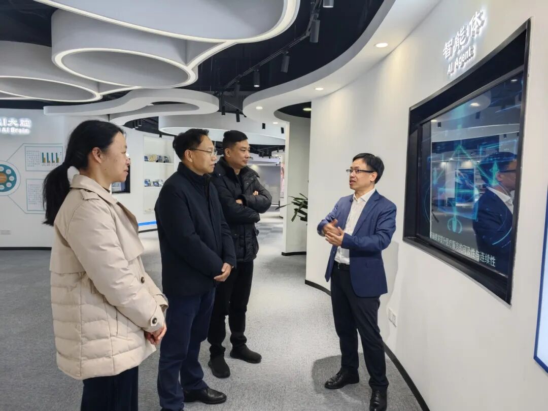 參觀過程中,程總介紹了健培醫(yī)療AI生態(tài)體系建設情況和人工智能技術在醫(yī)療各領域創(chuàng)新應用的場景,以及新一代人工智能技術賦能醫(yī)療、醫(yī)藥、醫(yī)保、養(yǎng)老等生命健康產(chǎn)業(yè)等情況。并重點介紹了啄醫(yī)生APP+穿戴設備軟硬一體化、線上線下一體化的創(chuàng)新方式進入家庭的場景應用。通過基于大模型智能體的啄醫(yī)生平臺,打造不同的應用場景,是實現(xiàn)優(yōu)質(zhì)醫(yī)療資源下沉,專家經(jīng)驗更快走向基層,運用科學技術來推動基層醫(yī)療水平的提升,更好的保障百姓生命健康的有力措施。