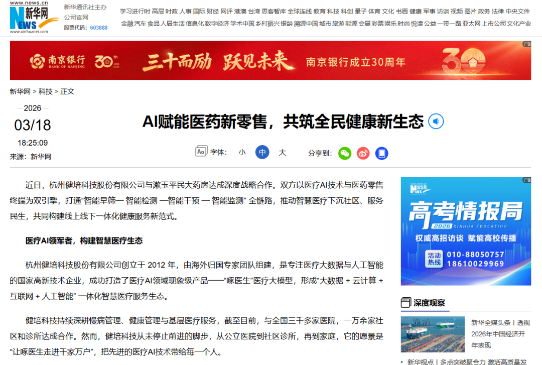 新華網(wǎng):《AI賦能醫(yī)藥新零售,共筑全民健康新生態(tài)》
